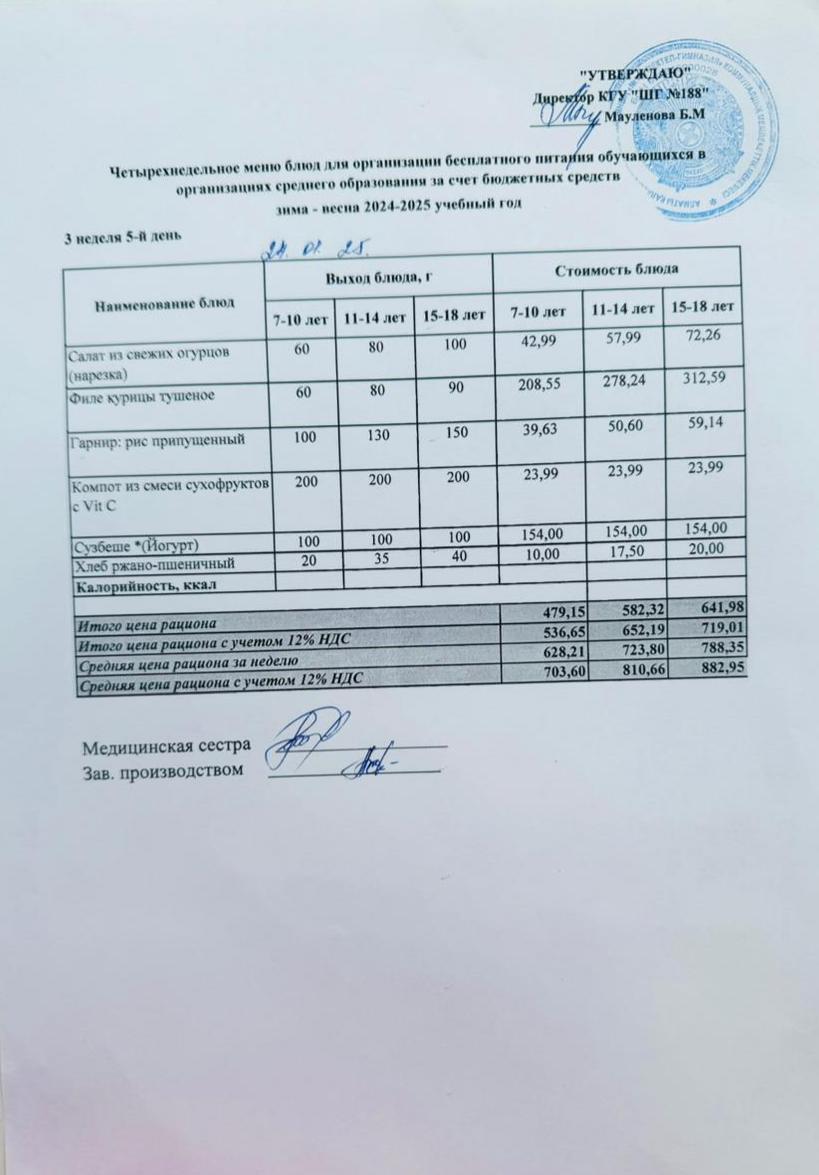 Күнделікті меню 24.01.2025
