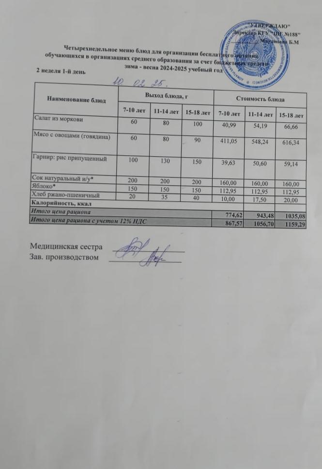 Күнделікті меню 10.02.2025